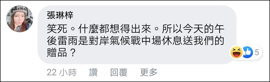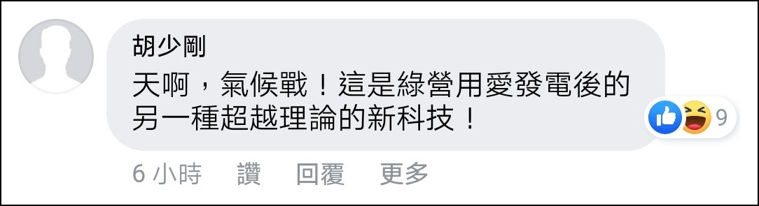 有台灣網民在評論區裏跟帖留言,認為“氣候戰”也就綠營能想得出來↓↓