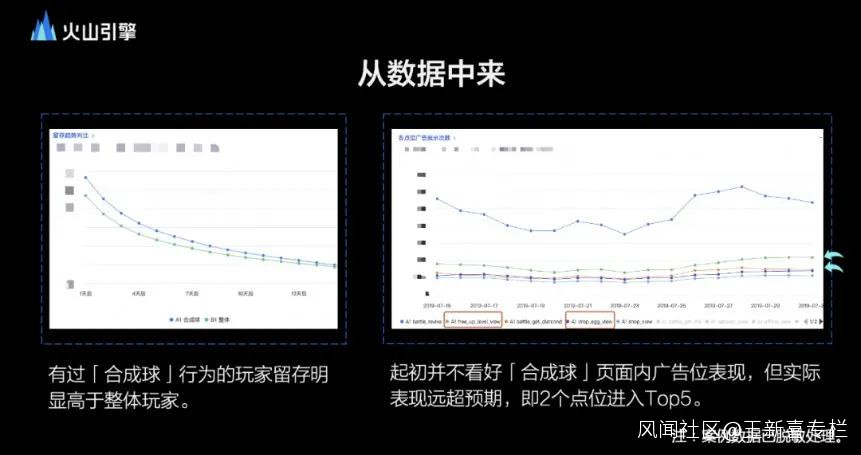 而在Ohayoo與火山引擎的合作中,也可以看到,基於火山引擎數據智能套件能力,通過數據體系觀察業務指標的變化,團隊得出一條大膽的猜測:球合成更容易成為吸引玩家的關鍵。