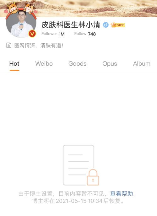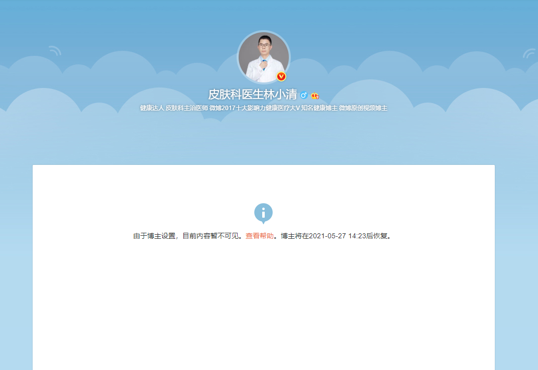 5月8日上午11時,觀察者網發現,@皮膚科醫生林小清 已將微博內容設置為暫不可見。