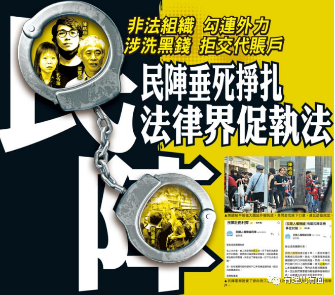 港媒不止一次報道過,亂港組織勾連外國勢力、受政治黑金資助,警方社團事務主任上月向民陣發信,要求在5月5日或以前交代及解釋其收入、開支、銀行賬户、與26個團體聯署致聯合國人權事務高級專員的目的及原因等6項資料,但民陣召集人陳皓桓並未向警方提供該6項資料。從這個行動來看,警方或正依據《社團條例》對“民陣”進行依法取締。