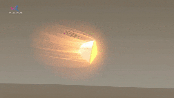 火星雖然只有稀薄的大氣層,但已經足以燒壞高速進入的探測器。因此想要着陸火星的探測器都必須“鎧甲”護身,被打包塞進隔熱的保護罩裏,這個罩子叫“氣動外罩”。天問一號的着陸平台和祝融號火星車,一路上都被塞在這個罩子裏,直到快要落地才會“破罩而出”。