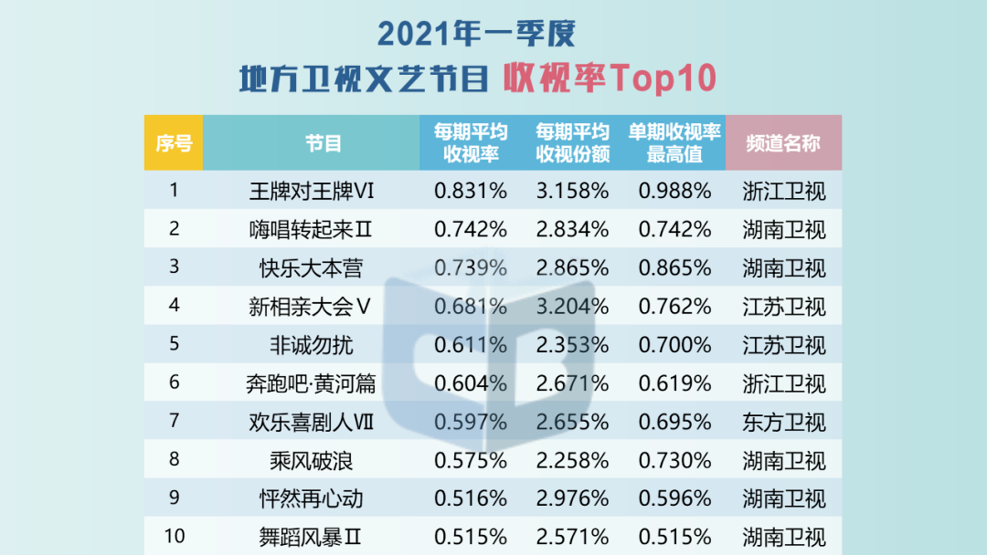 上文中筆者曾提到,在今年前四個月,衞視劇綜破1作品數量分別為12和17部,雖與去年“疫情”加持下的破1作品數量懸殊較大,但總的來看,與2019、2018低迷的衞視收視不相上下,尤其是體現在綜藝領域。