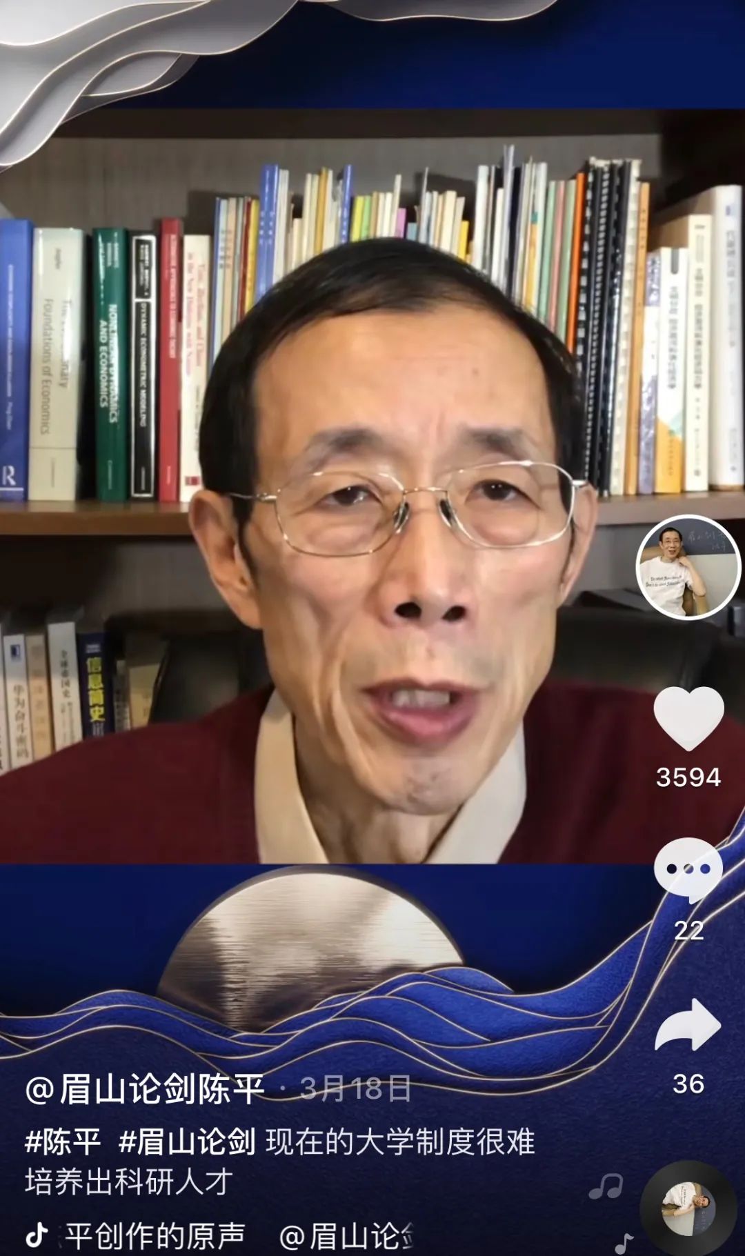 在校園裏,陳平是物理學家,也是經濟學家。而面對鏡頭,堅持直抒胸臆的他,更為人熟知的身份,是一位在抖音上擁有486萬粉絲的 “眉山劍客”。