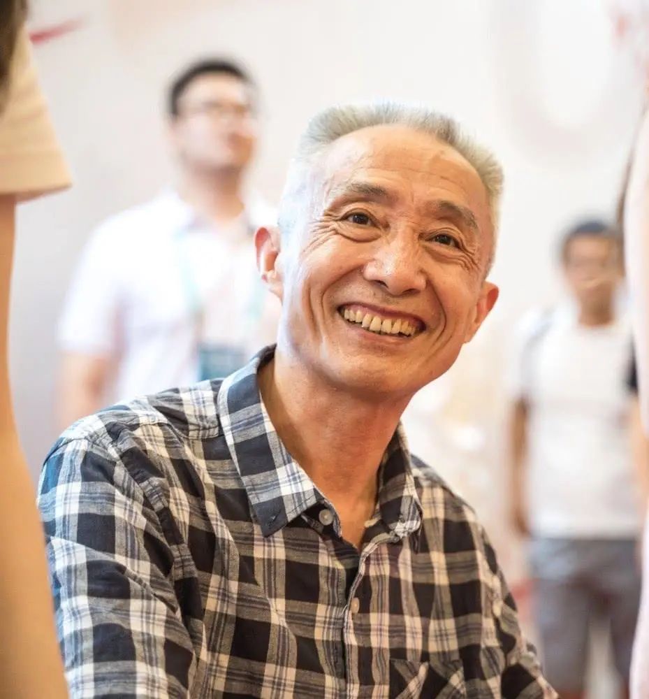 站在眾人面前的戴建業,身材瘦削,一頭白髮,笑起來面部皺紋隨着笑容的弧度產生起伏變化,看上去温和妥帖。
