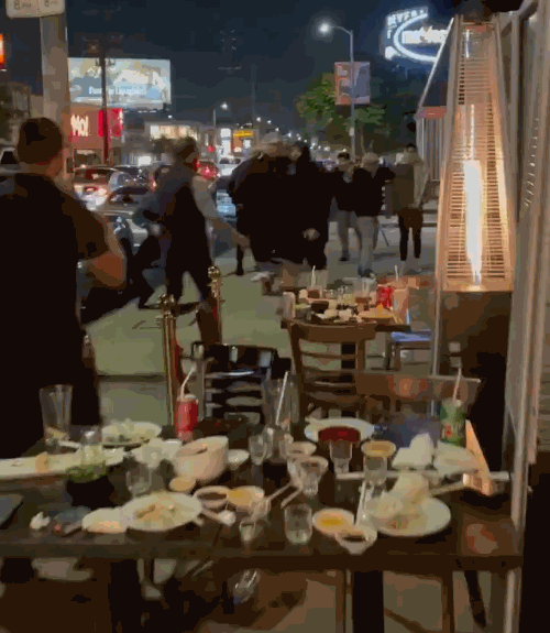 據美國廣播公司(ABC)旗下電視台“WABC-TV”、哥倫比亞廣播公司(CBS)旗下電視台“KCBS-TV”等多家美媒核實,上述視頻中的一幕發生在週二晚間(18日),地點為美國加利福利亞州洛杉磯西好萊塢地區拉謝內加大道(La Cienega Boulevard)外的一家餐廳。