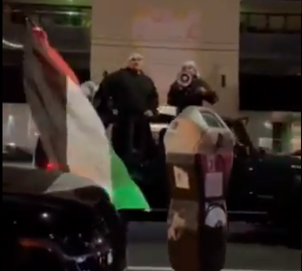 社交媒體視頻顯示,幾名巴勒斯坦支持者在街頭抗議