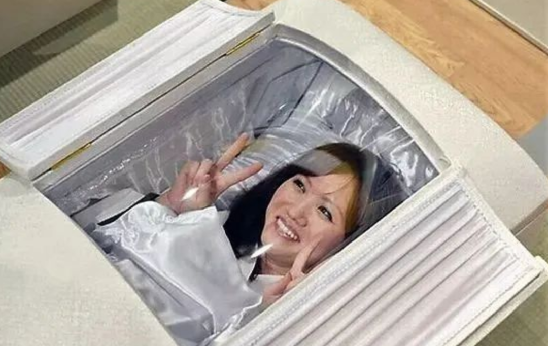 這樣做出來的精美棺材,深受日本人的喜愛,不信你看她們躺在棺材裏臉上洋溢的笑容。