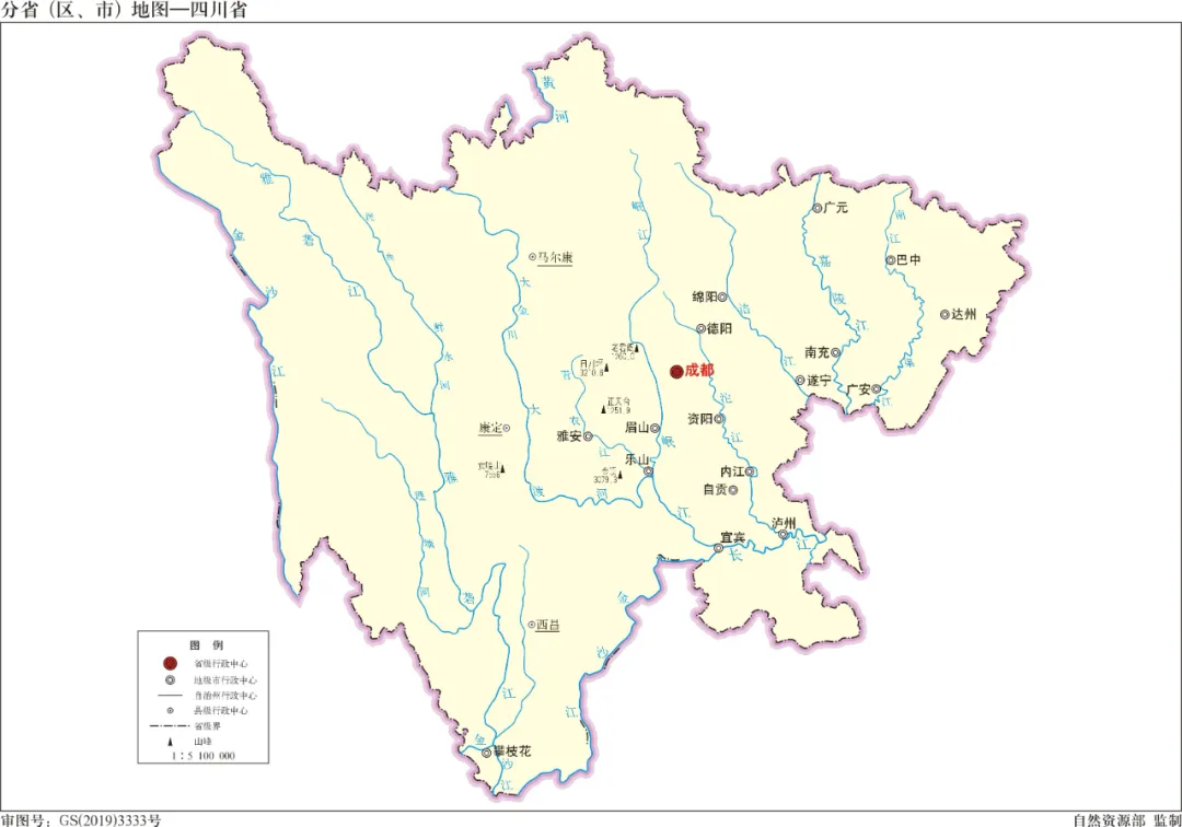 四川省地圖。圖源:自然資源部。審圖號:GS(2019)3333號