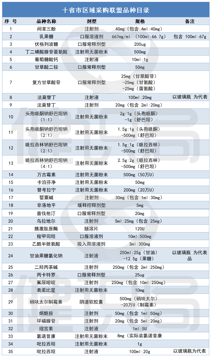 按照工作部署,本次跨區域採購聯盟由重慶市牽頭,常用藥品採購共涉及35個品種,包括:萬古黴素、卡泊芬淨、替考拉寧、罌粟鹼、非洛地平、普伐他汀等不少臨牀知名品種。