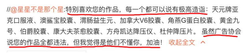 但現實是,廣告虛假取證太難了,這麼多年就沒見幾個明星因為代言而受處罰、被定罪。