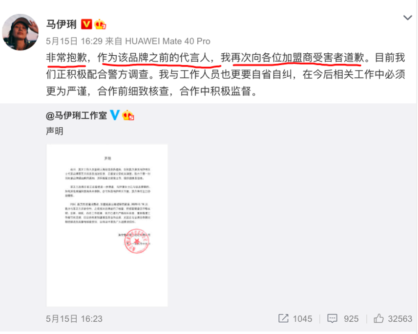 馬伊琍既不是第一個敢給詐騙公司代言的明星,也不會是最後一個。