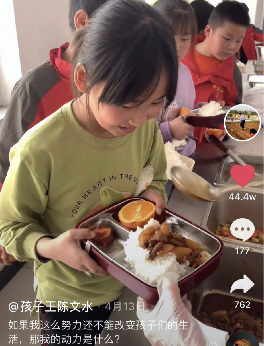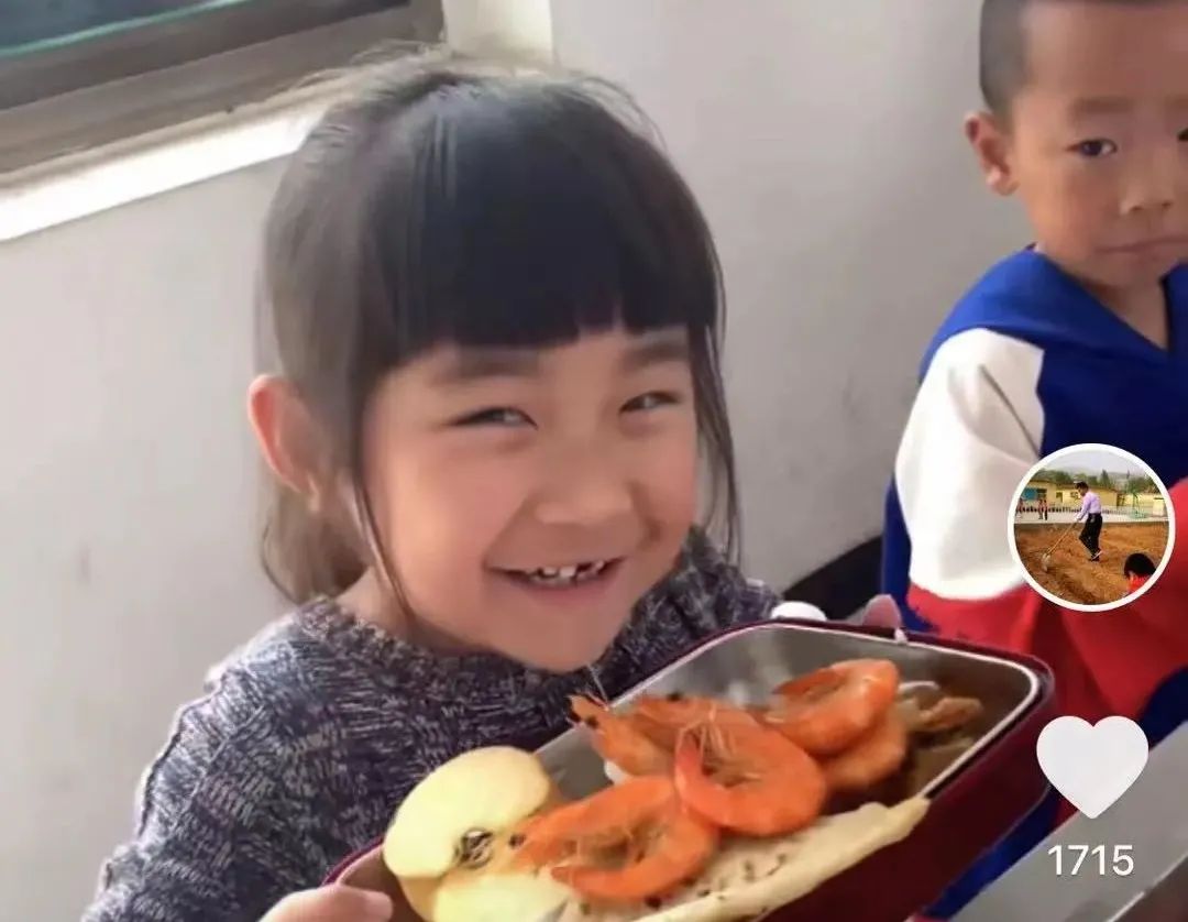 每天為了孩子們能吃上肉蛋魚開心地笑。