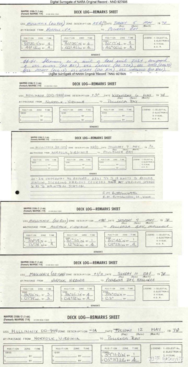 比如這份美國彈道導彈核潛艇的艇上日誌,出發時在美國東海岸的Q時區(即GMT-4),但在進行戰鬥巡航時一概改為使用Z時。
