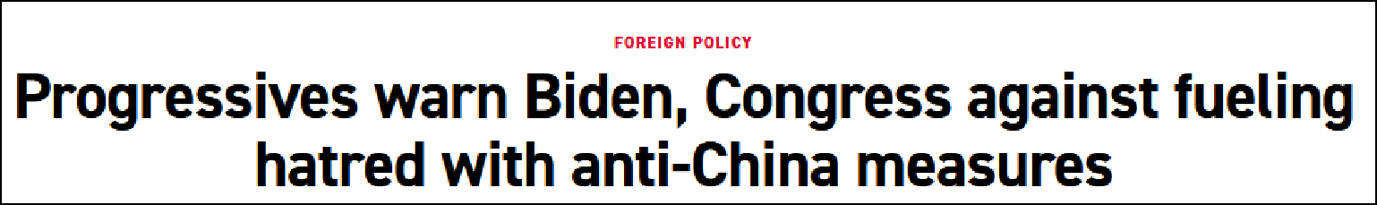 近日,在美國兩黨和白宮聯合推動一系列“反華法案”之際,美國60多個反戰、移民、環保等領域的社會團體、至少4名國會議員對這一舉措表示質疑與反對。