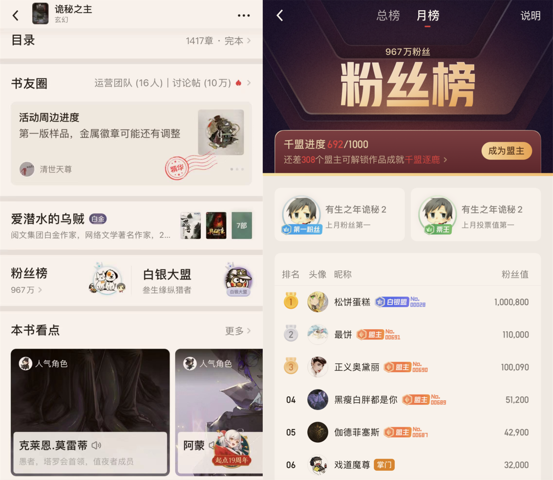 而IP化有兩條路徑,一類作者本身實力過硬,作品直接就能得到下游認可。但在一個類型市場中,這一類作者與作品並不佔大頭,於是平台與讀者的合作共創就變得十分重要。精準的反饋讓作者得以更加高效地打磨作品,豐富的互動傳播則為IP化打下提前量。