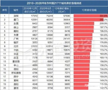 從2010到2020年的歷史數據看,10年來,廈門房價漲幅達290%,僅次於深圳,位於中國城市第二。