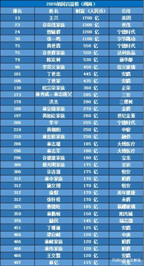 胡潤研究院發佈的《2020胡潤百富榜》,在2398位財富超過20億元的企業家中,有105位閩商上榜。