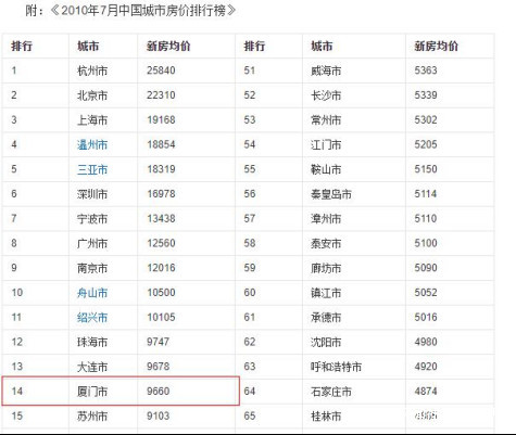 要知道,2010年,廈門房價不過位於全國第14;今天,已經高居全國第4。