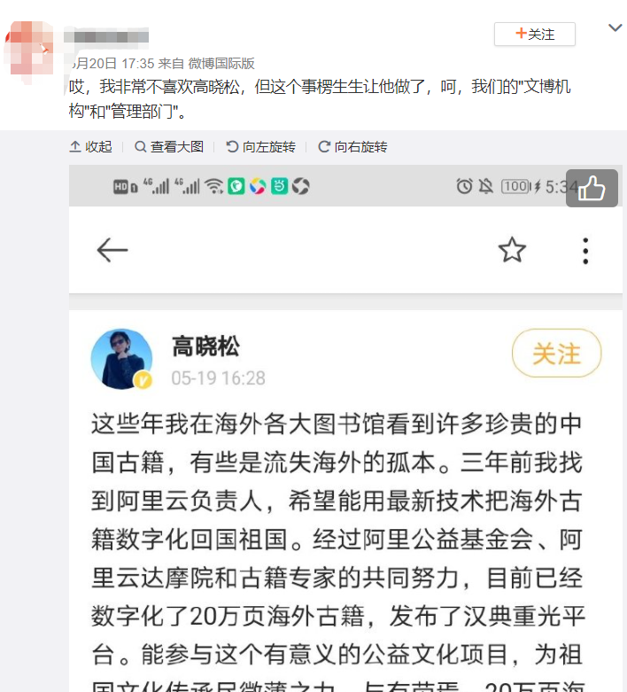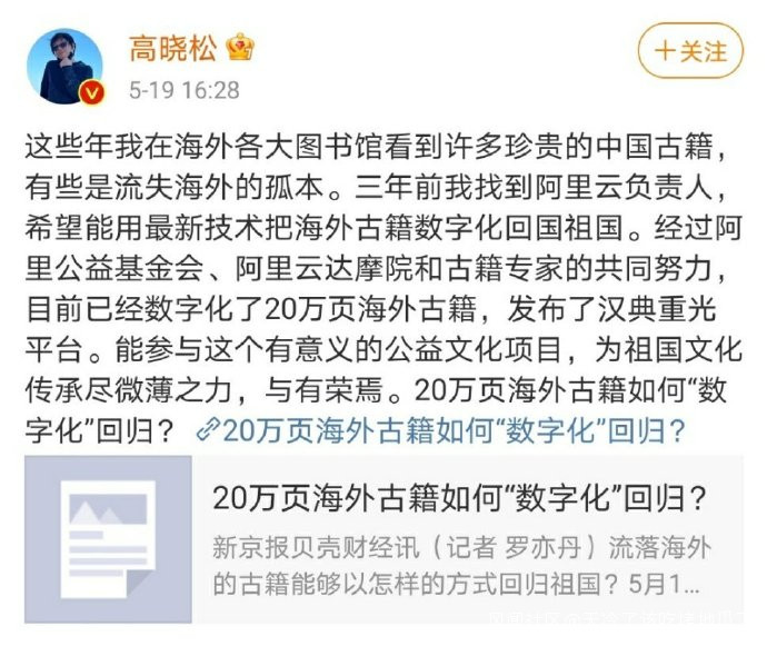 ⁴然而,經過高曉松先生的筆法演繹,這事好像成了他主導牽頭做的項目。川大專業的古籍整理研究所的專家為此事奔走兩年,聯絡他們專業相熟的海外機構、帶着學生一起幹的重大項目,只落的一句“和古籍專家的共同努力”。他好像很喜歡這樣子講話。