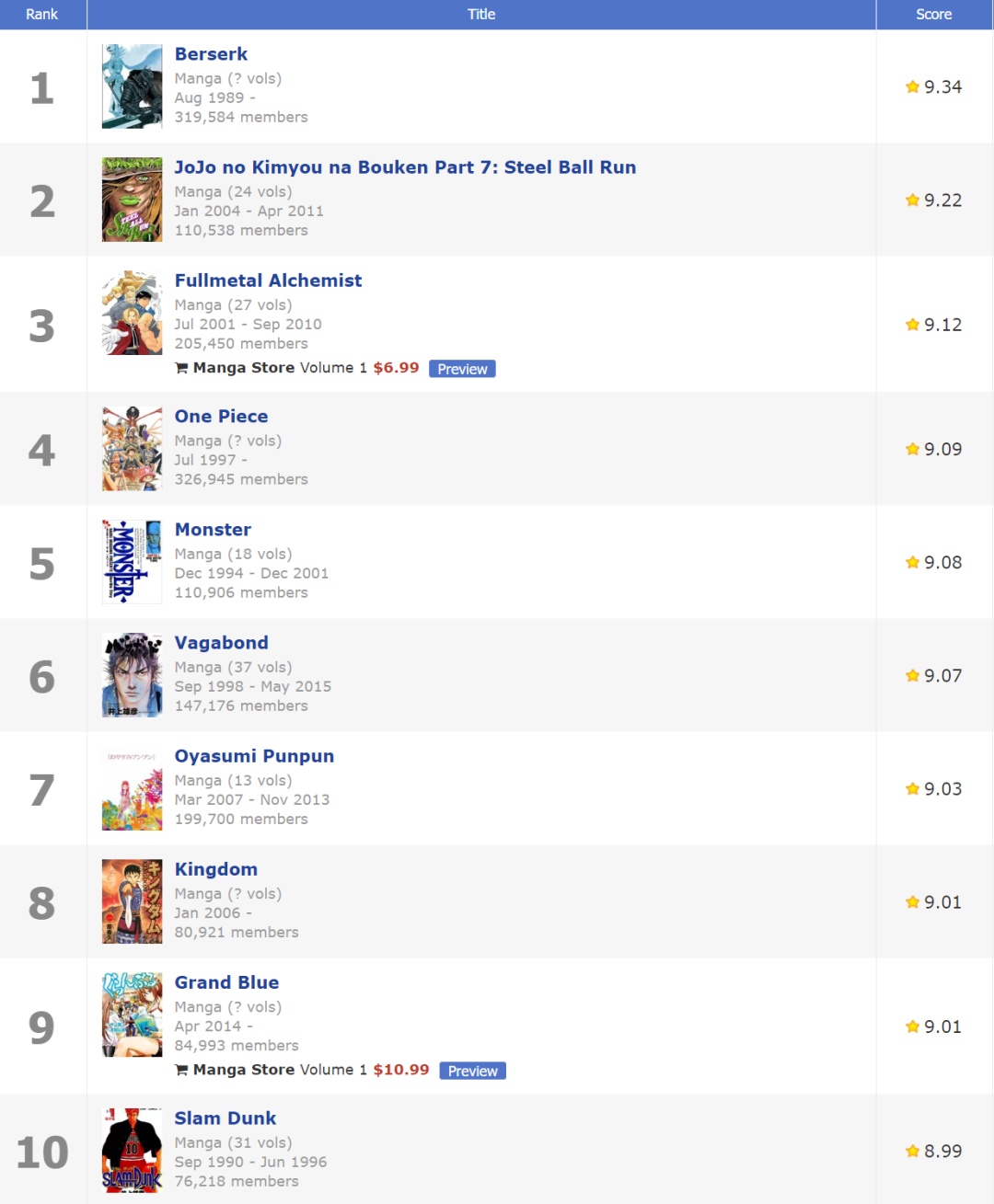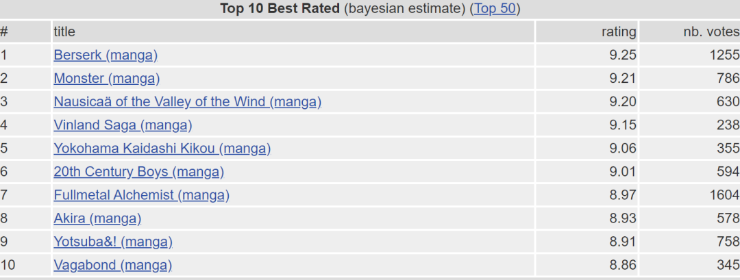 儘管評分網站向來只是一個參考,但也足以可見《劍風傳奇》在歐美讀者心中的地位。