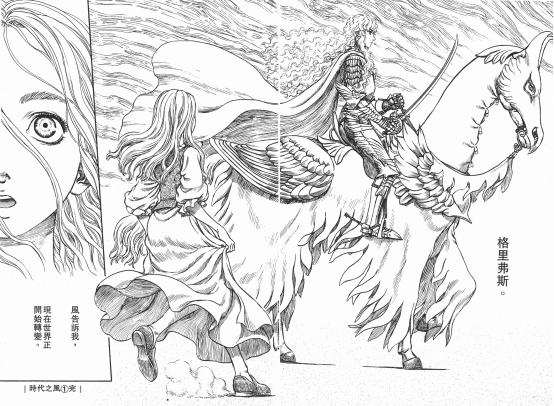 在《劍風傳奇》中,我們確實能看到很多明顯借鑑和學習少女漫畫的元素。最典型的莫過於格里菲斯的人物設計,以及很多場景的設計。