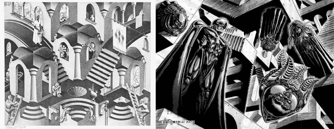 埃舍爾的作品(左) 劍風傳奇(右)