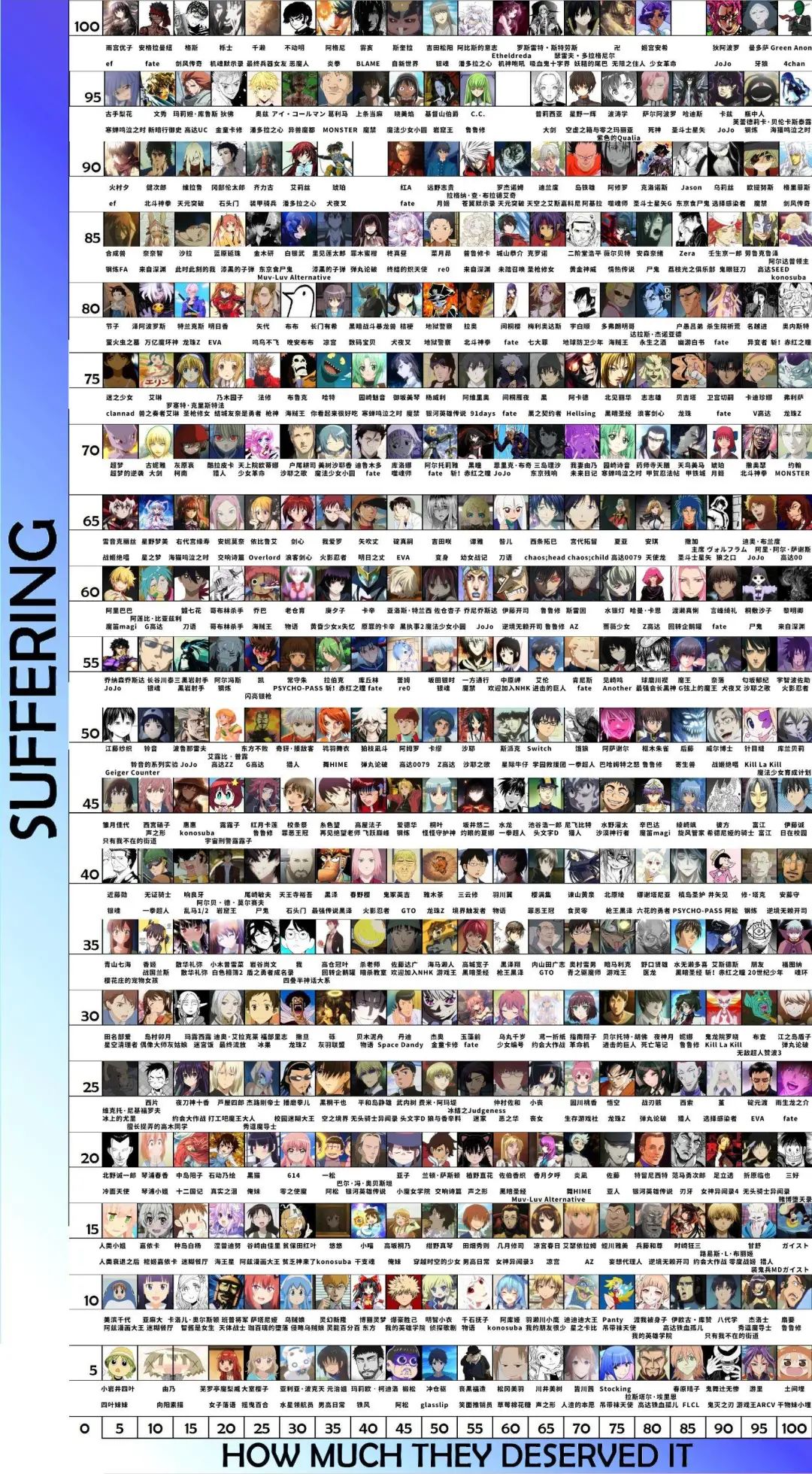 處於最慘動畫角色頂端的格斯:縱向座標是痛苦值,橫向座標是作死度。