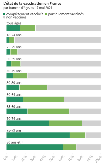 法國疫苗接種運動還在展開,但是在75歲以上的人羣中,疫苗接種趨於平穩,而仍有超過20%的人未接種疫苗。