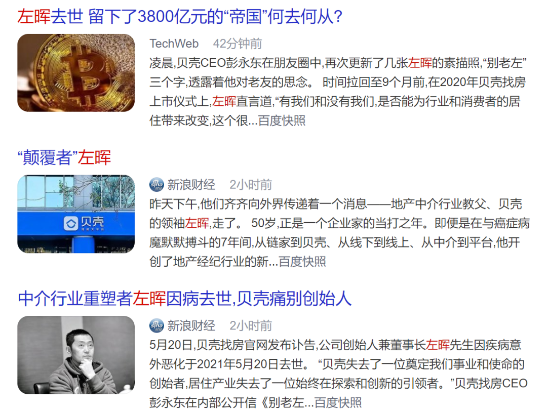 然而我看昨天網絡上關於這件事的文章,幾乎變成了給左老闆歌功頌德大合集,我甚至冒出了一個古怪的想法,難道貝殼還要借老闆的死來搞營銷、搞公關嗎?