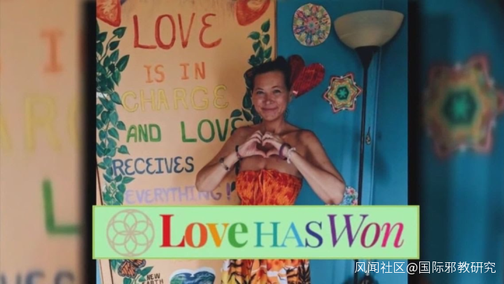 ·卡爾森在“愛贏了”組織的宣傳照片。在組織中,卡爾森一直被奉為創造了萬物的“上帝之母”,且被認為已經有190億歲。