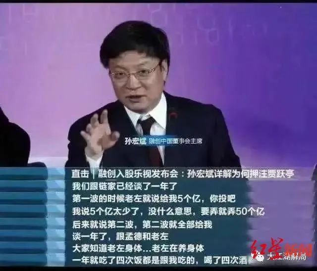 2017年1月,融創入股樂視新聞發佈會上,融創中國董事會主席孫宏斌曾透露:“大家知道老左(左暉)在養身體,一年就吃了四次飯都是跟我吃的,喝了四次酒也都是跟我喝的。”