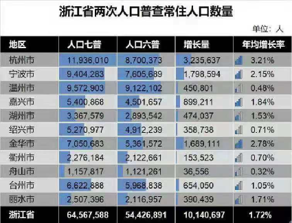 從人口流向分析,十年間浙江全省淨增的1014萬人,其中杭州淨增324萬,寧波競爭180萬,也遠遠拉開了和其它城市的距離。排第三位的温州僅增加了45萬。