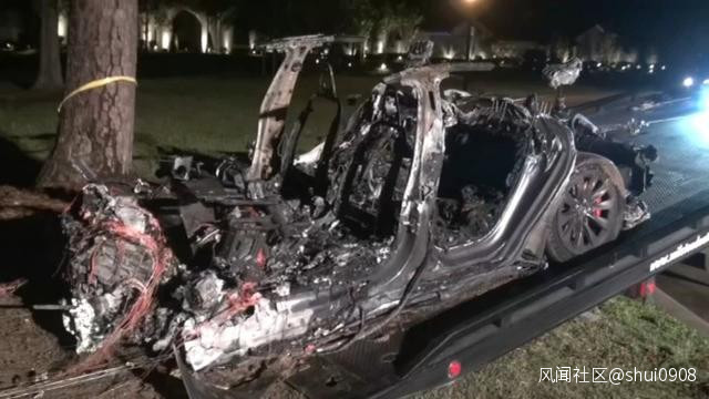 2021年4月17日晚,美國得克薩斯州的公路上,一輛特斯拉Model S在行駛期間撞樹並引發火災。該事故導致車上兩名男子喪生,轎車也被燒得僅剩下一個車架。值得注意的是,警方發現,事發時,車輛處於無人駕駛狀態。但隨即,特斯拉強硬表態否認事發時車輛處於自動駕駛狀態。