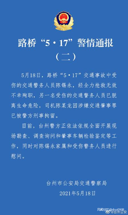 2021年5月17日,浙江台州,兩名交警正在高架橋上處理交通事故,突然從遠處駛來一輛黑色的特斯拉轎車,直接與兩名民警相撞,造成一名交警殉職,另一名重傷。