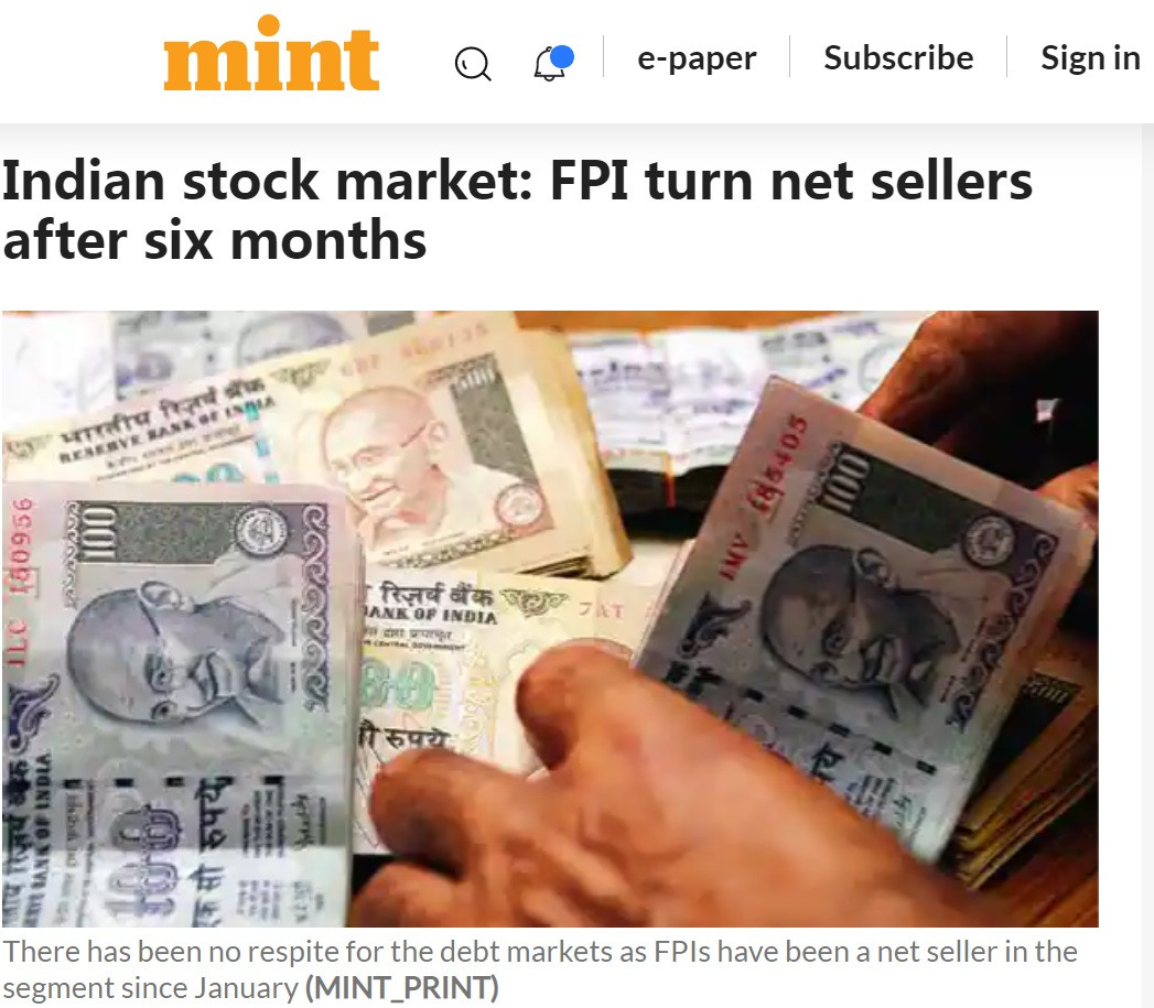 MINT(2021/5/2): 緊隨其為期六個月的購買狂潮,外國投資者在4月轉為淨賣家,並從印度股票中撤出了9659千萬盧比(₹9,659 crore ),這是由於強烈的第二次冠狀病毒浪潮及其對經濟的影響而引起的。