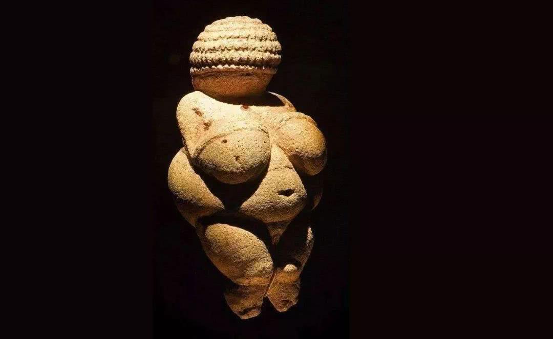 1908年,在奧地利沃爾道夫附近的一舊石器時代遺址,考古人員發現了一尊目前已知的最早的人類形象石雕(稱為“原始的維納斯”,如下圖所示),女神的面部、手腳等細節較為粗糙,頭部僅刻有捲曲的頭髮,手臂細小,但身材則是誇張的豐乳肥臀。據信,這是一位兩萬年前的胖女神。