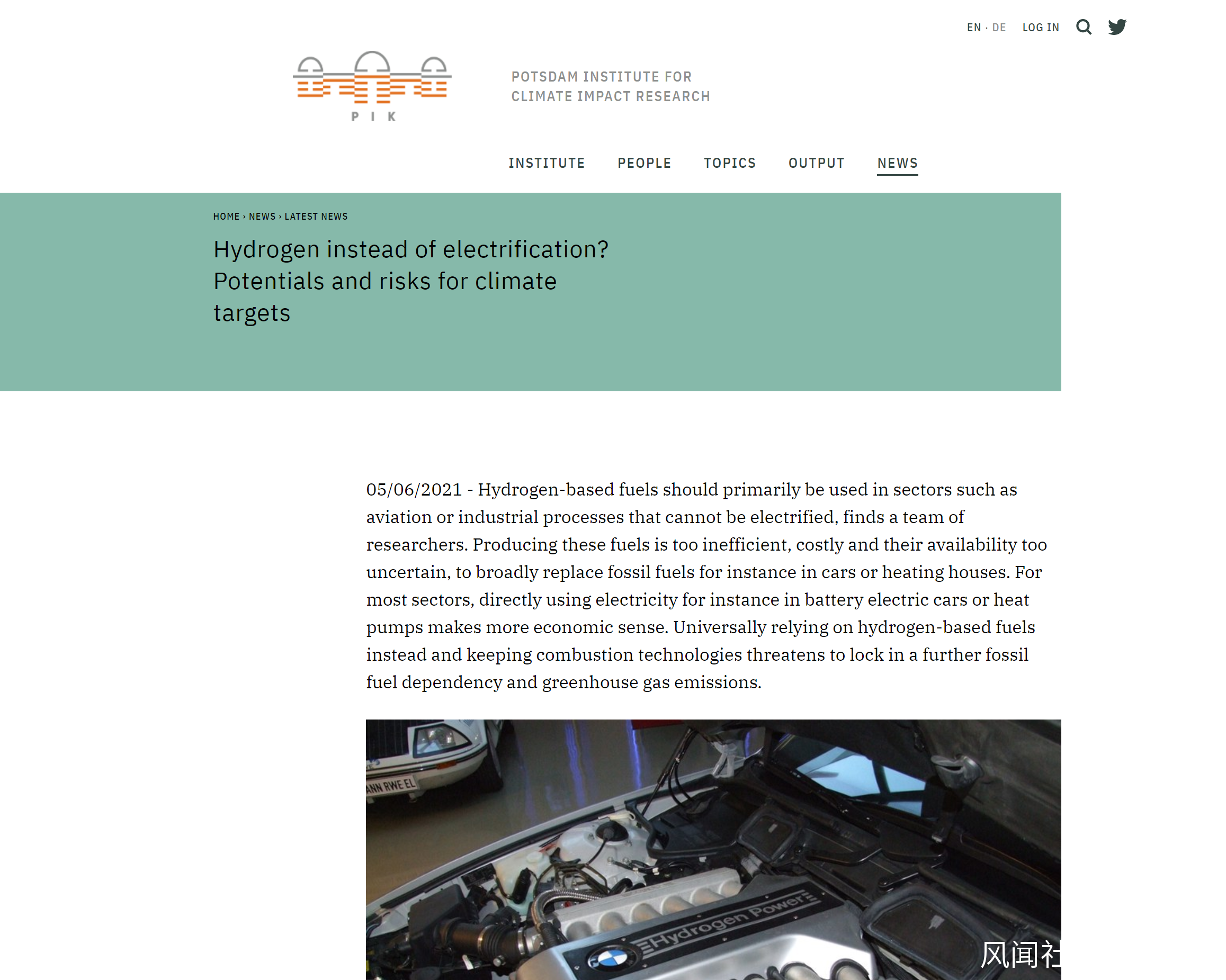 在他們看來氫燃料應主要用於航空或工業流程等無法電氣化的領域。生產氫燃料的效率太低,成本太高並且其可用性太不確定,以致於不能廣泛地替代化石燃料,特別是在汽車行業。對於大多數行業來説,直接在新能源汽車中使用電力才具有更大的經濟意義。