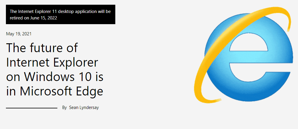 就在昨天微軟終於決定親自送 IE 瀏覽器最後一程,宣佈將在今年的 6 月 15 日全面停止對 IE 瀏覽器的支持。