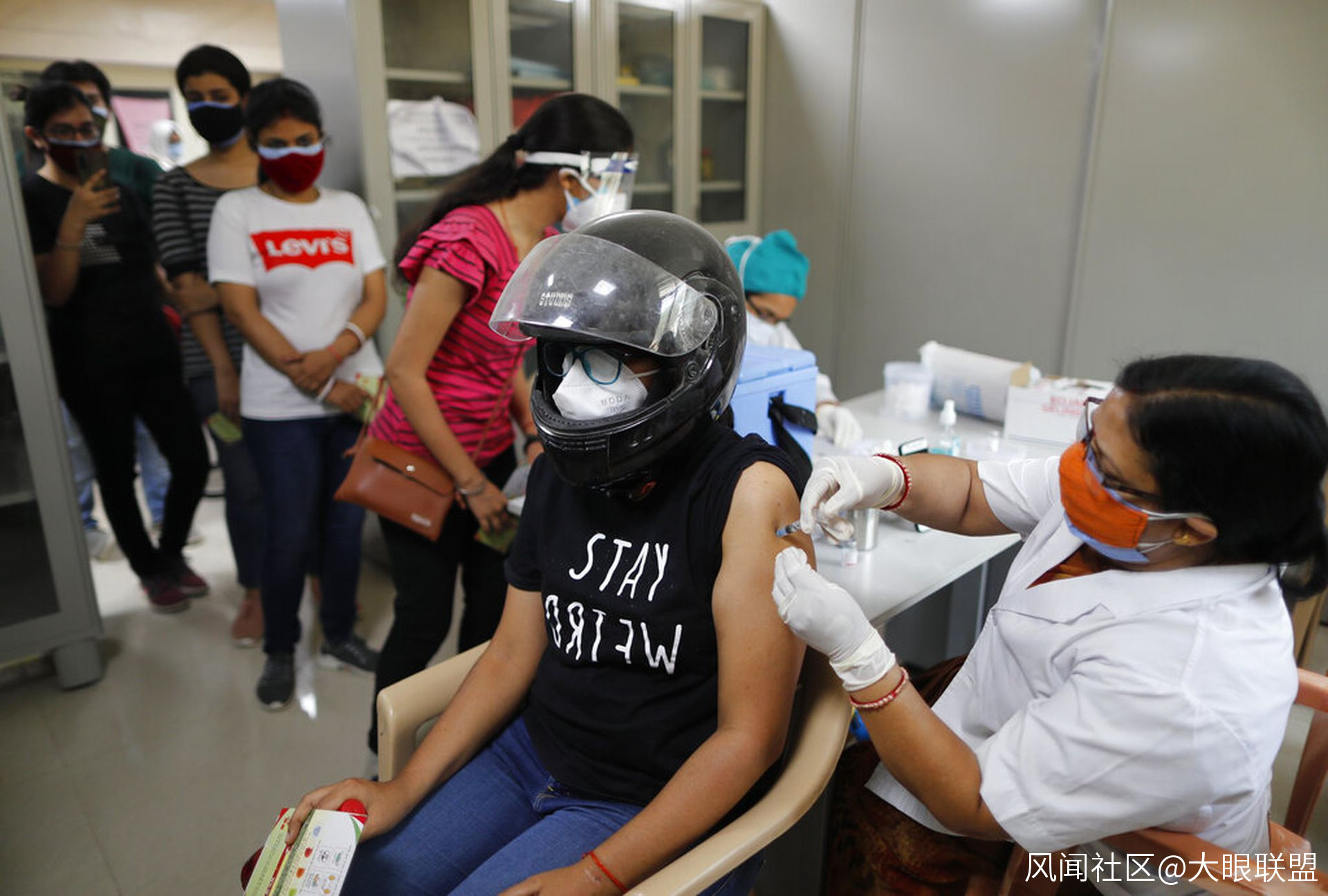 印度新冠肺炎疫情:圖為5月8日,一名女子在印度北部城市普拉亞格拉傑接種阿斯利康疫苗。(AP)