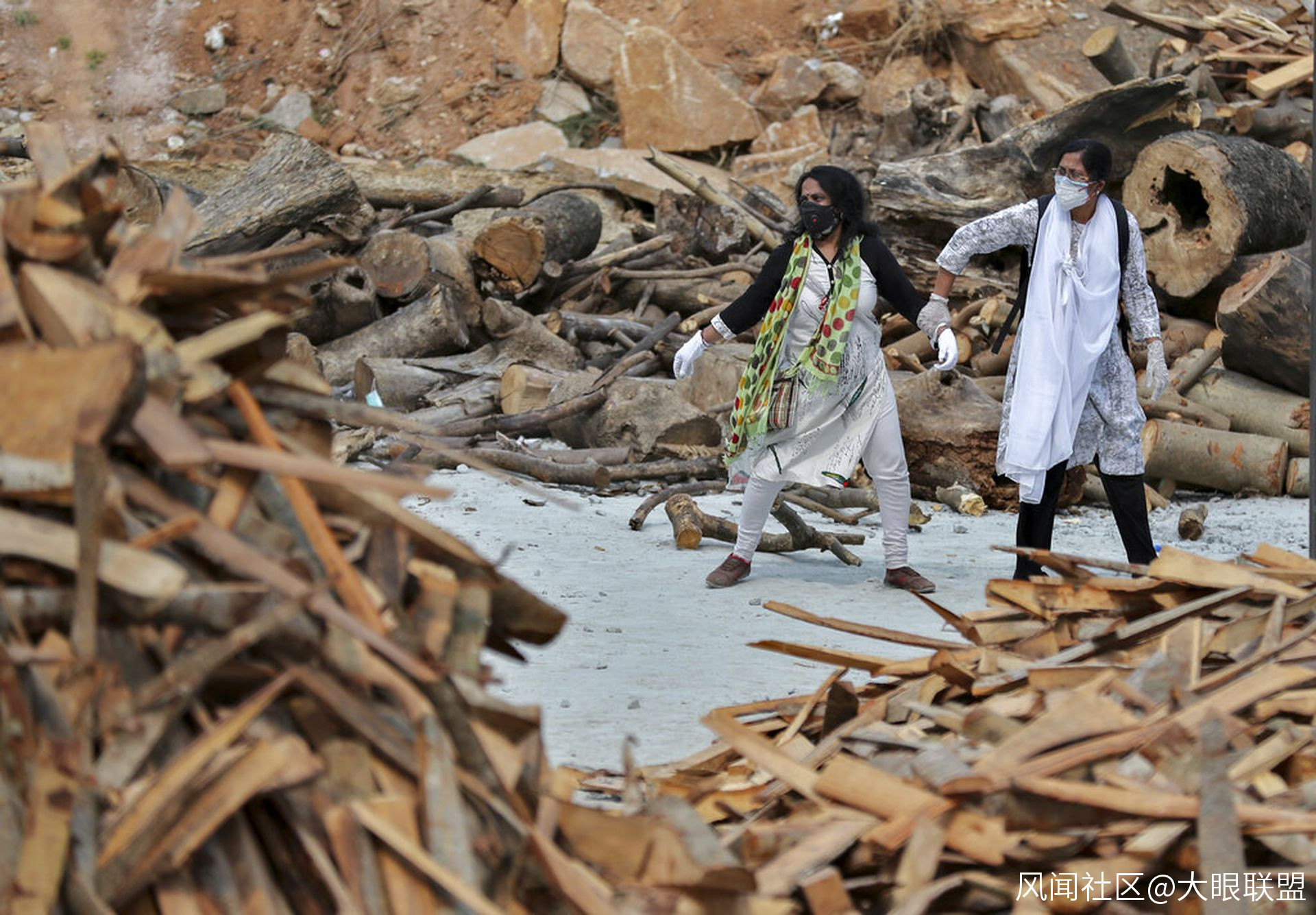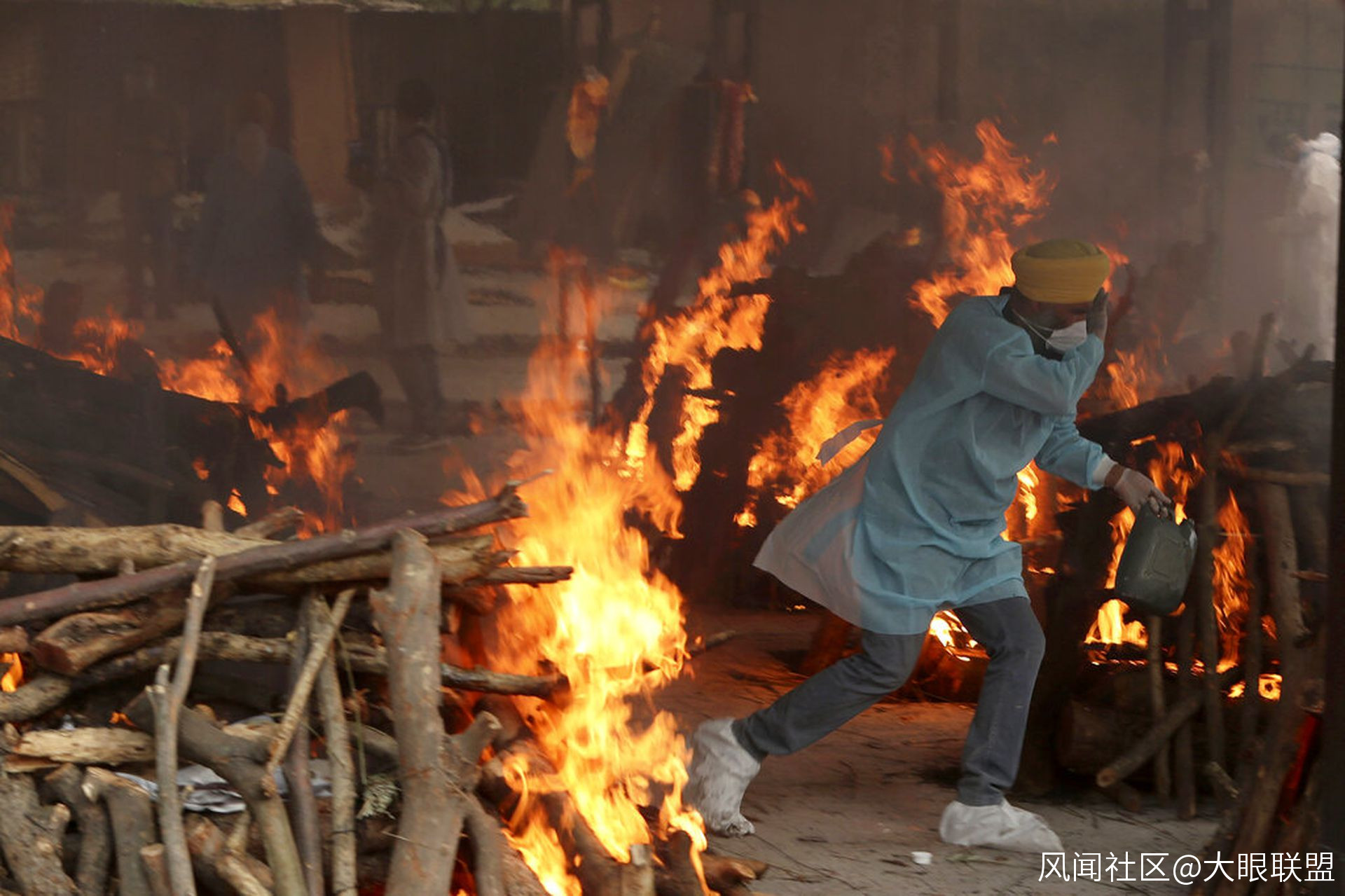 印度新冠肺炎疫情:圖為4月25日,一名新冠肺炎死者的親戚在查謨一個火葬場出席葬禮。(AP)
