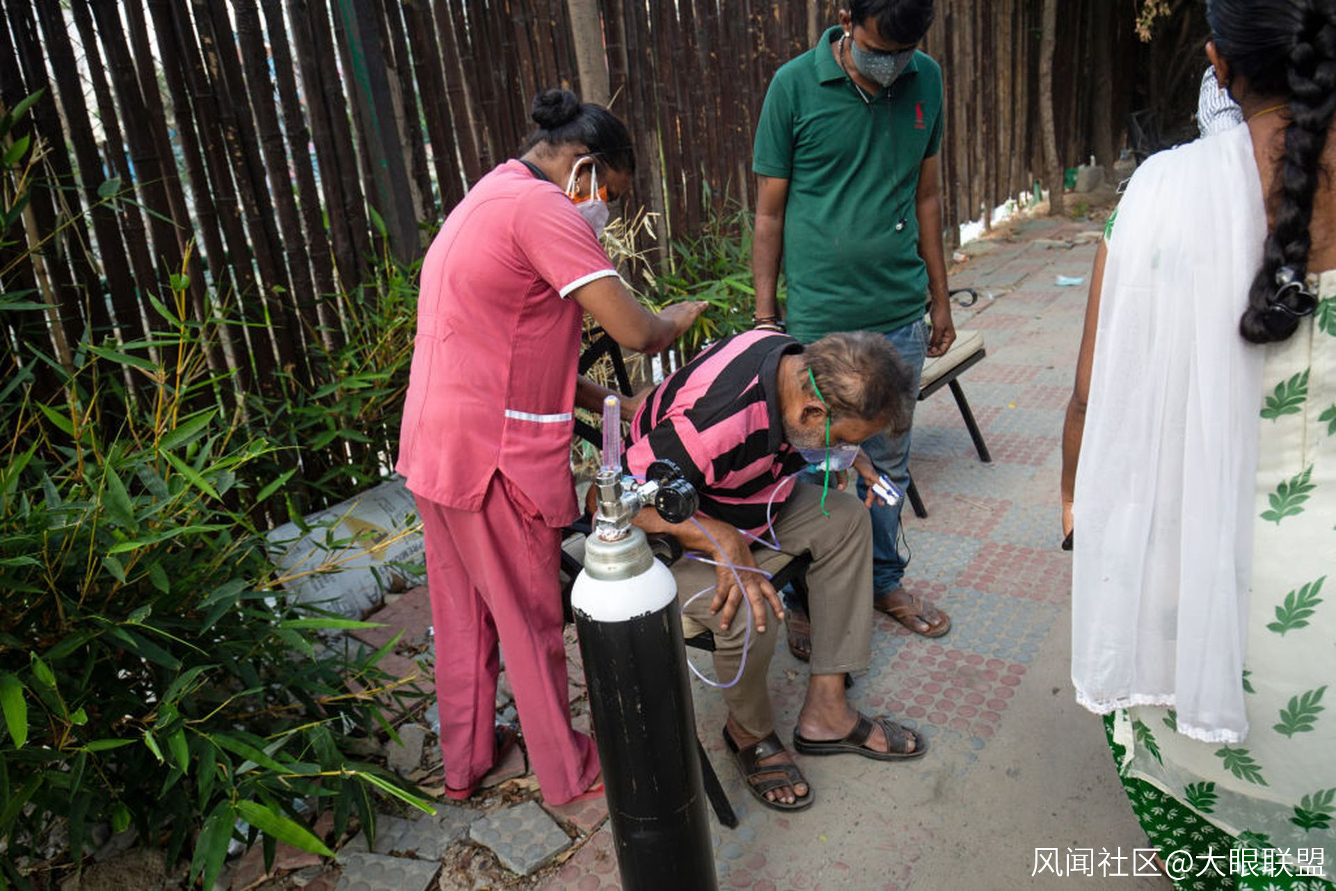 印度新冠肺炎疫情:圖為5月8日,班加羅爾(Bengaluru)一名護士正在為呼吸困難的長者掃背。(Getty)