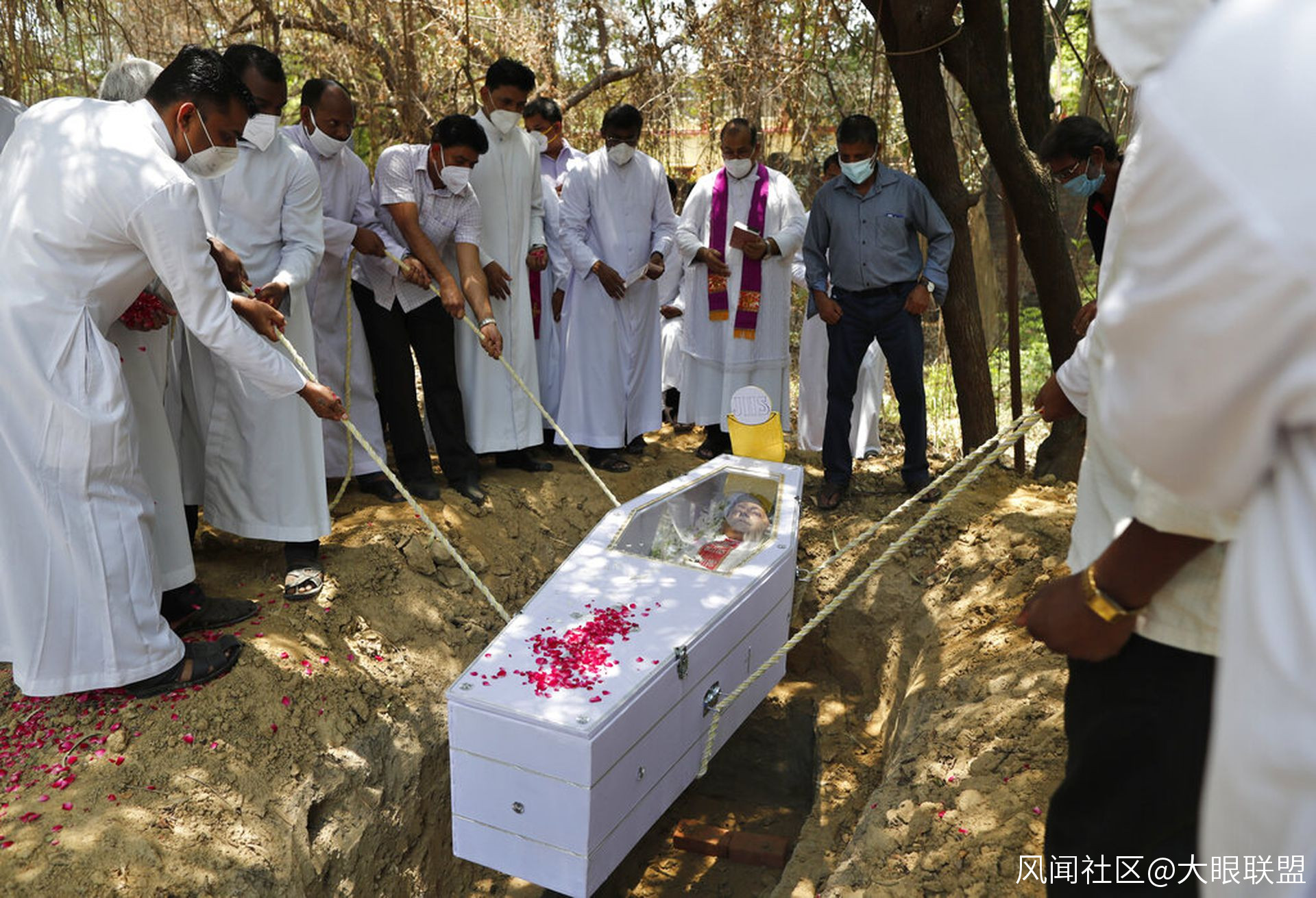 印度新冠肺炎疫情:圖為5月15日一名死於新冠肺炎的天主教徒下葬。(AP)