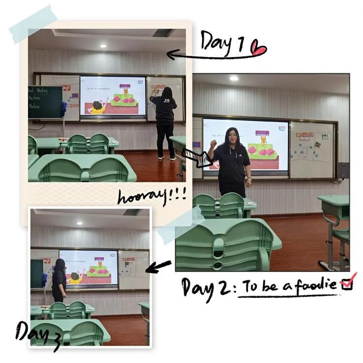 第一位上講台的是英語教師劉羽嘉,所教授的是二年級繪本課文《Oh,no!》。劉老師情緒飽滿,落落大方。精準的發音和有趣的故事情節引人入勝,她還設計了有趣的板書遊戲,在知識性講解的同時也不乏趣味性。