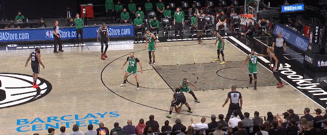 因此綠軍今天面對籃網,採取的也是一樣的,無限換防逼單挑。