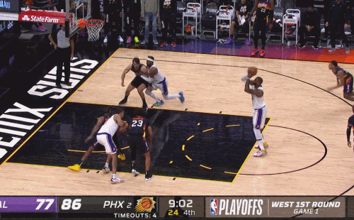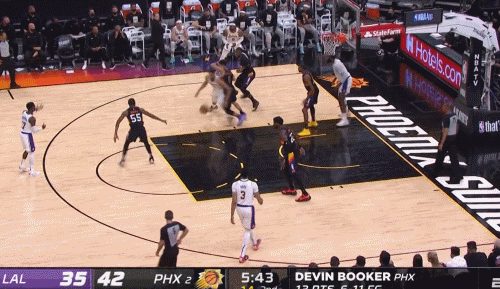 但湖人至少在防保羅的時候,可以選擇換防,這跟保羅的特點有關。他在有機會傳球時,通常不會選擇自己得分,這場球他傳得太舒服了,出手8次只得7分。如果用換防,逼迫保羅去投籃,或許太陽隊可以從他身上收穫20+的得分,不過保羅已經36歲了,整場那樣打很累。