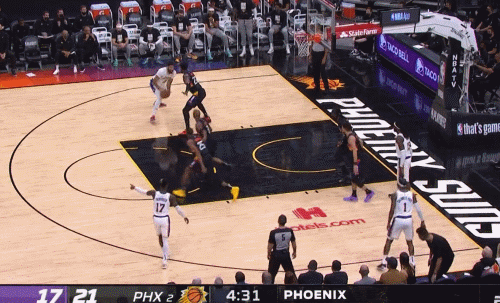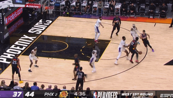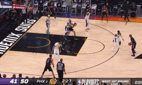 在進攻出現嚴重問題時,“雙塔”不僅沒有佔優勢,反而成了累贅。在進攻時,德拉蒙德站籃下,導致防他的人也在籃下,後衞突破會遭遇更多人攔截;一旦球不進,太陽隊反擊的時候,兩名大個子回防速度肯定比太陽隊慢。