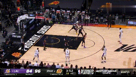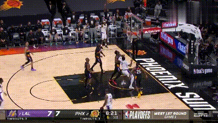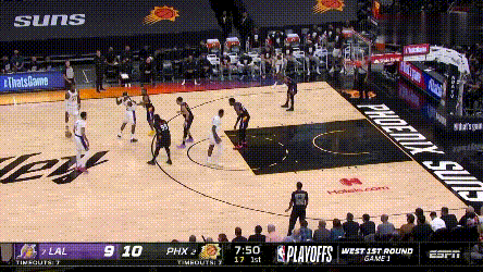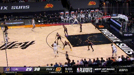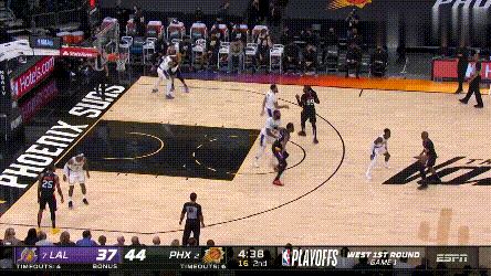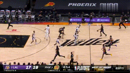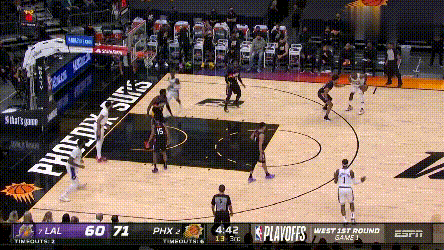 只有湖人自己做到了這些,我們才能去討論湖人進攻跟太陽防守的博弈,下面這個回合太陽精彩的身後夾擊,和濃眉沒有三分威脅,且回球詹姆斯的時機完全稀爛,才能成為湖人進攻下一個被批判的環節。