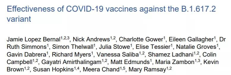 英國公共衞生部免疫接種負責人Mary Ramsay博士説:“這項研究提供了令人放心的證據,表明針對B.1.617.2導致的有症狀COVID-19,接種兩針這兩種新冠疫苗能夠提供高度保護。同時它也表明,完成兩針疫苗接種對獲得最大保護能力非常關鍵。”