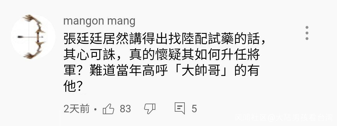 很顯然,這些台灣網民也已經看穿,張延廷的發言看似是隱隱地在表達對大陸疫苗的不認可、不放心,實則是居高臨下地歧視陸配和陸生,而且他本人對於這種歧視不自知。