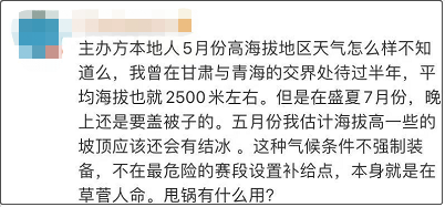 針對類似説法,相關行業從業者李先生表示,既然賽前已經颳大風了,那麼主辦方應該有一個新的預期。發現天氣轉向惡劣的時候,主辦方在終止比賽的方面做得不夠及時。